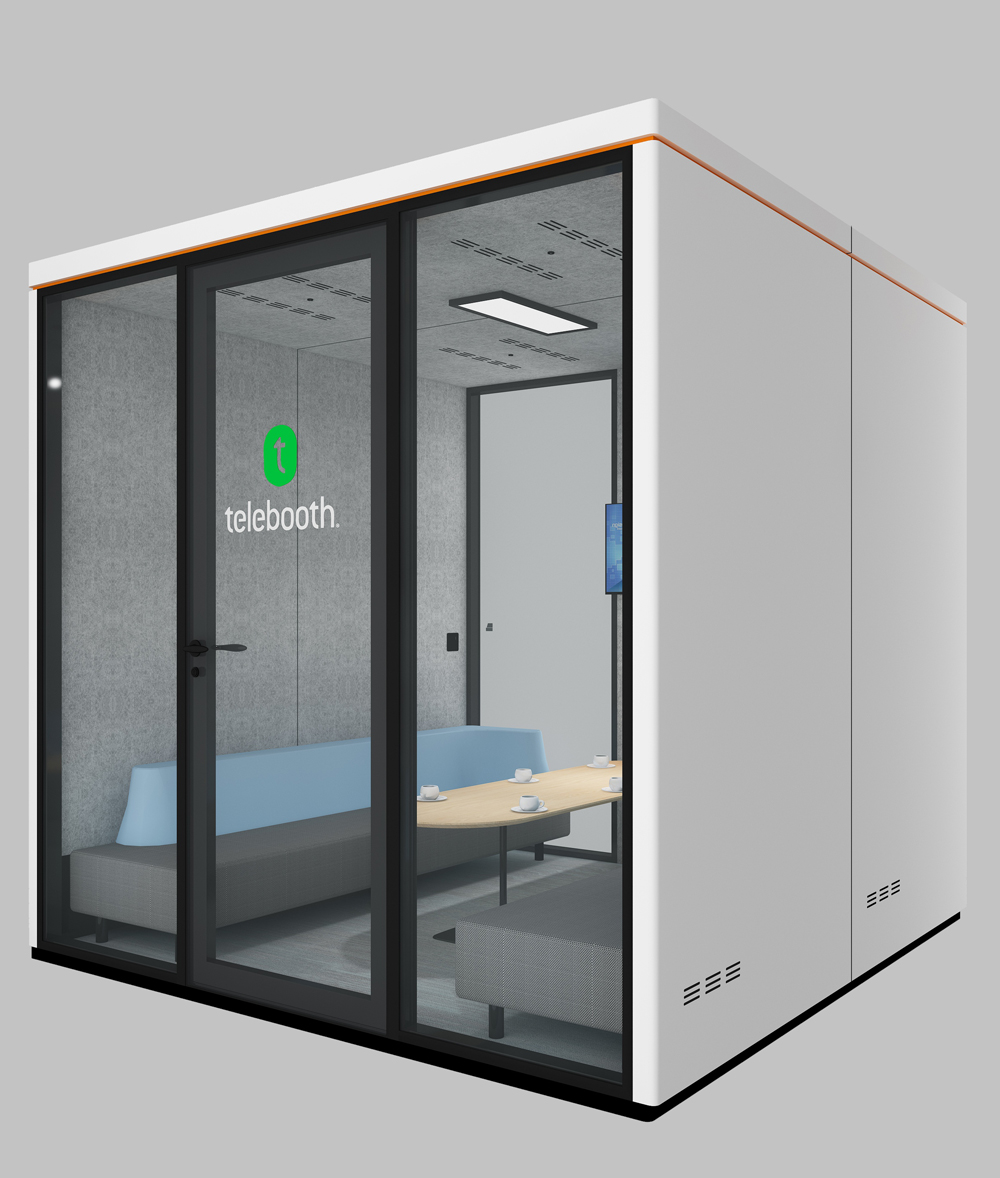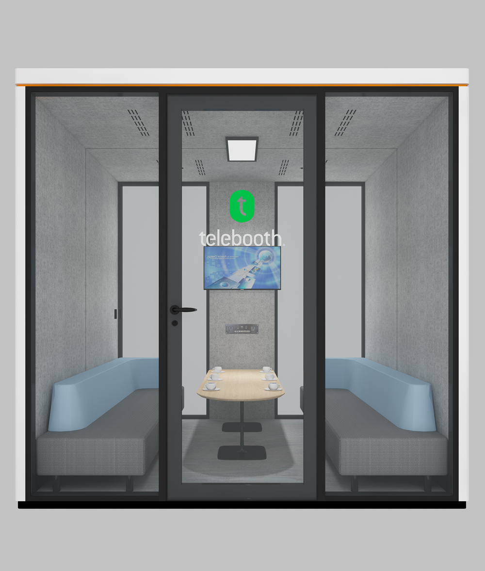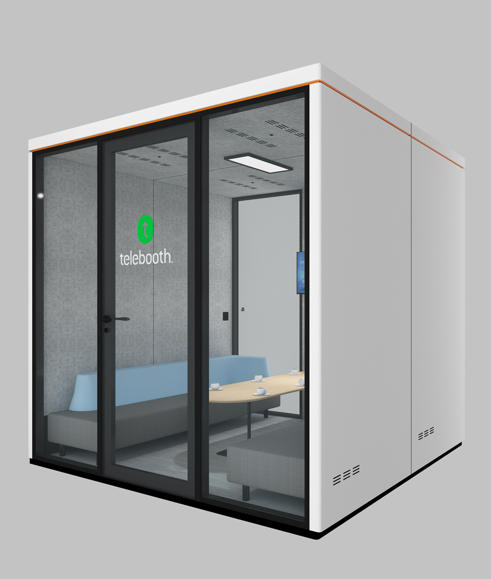 TB-R is a soundproof phone booth designed specifically for 4-6 person meetings.it features a conference system and multimedia technology, making it ideal for business meetings and presentations.With its design, TB-R promotes collaboration while also ensuring privacy in a highly focused collaborative space.